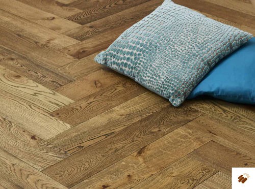Brooks Floor: Herringbone Multi-ply H1013A Chatsworth Oak Hand-Scraped / Brushed / Distressed / Cognac Stained & UV Oiled (15/4 x 120mm)