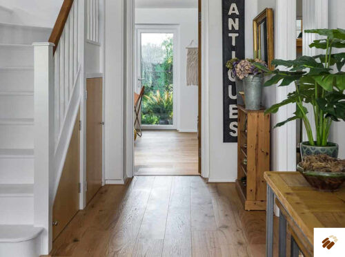 Deco Silver Haze flooring beautifully crafted coloured floors created from an oak top layer which is lightly brushed to release the natural grain. Wood lye is then applied to bleach and colour the floors to create the deep lustred and distinctive oak tones and grain variations found in the collection.